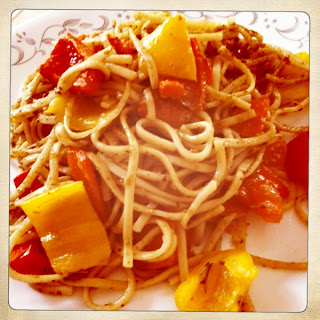 Pesto also contains cheese (mostly Parmesan or Romano, as this recipe mentions). I had paneer at home, and so I used it instead. Pulse it all together. Don’t forget to add salt and pepper. Pour in some good olive oil while it’s getting pulsed. I bought this brand (below, right) from Dekalb Farmers Market. You can also see the smaller bottle of chili oil next to it, a bottle of Braggs right behind, and possibly the can of sesame oil to the right of the picture. Just giving you a mini-tour of the oils and seasoning cabinet… 🙂